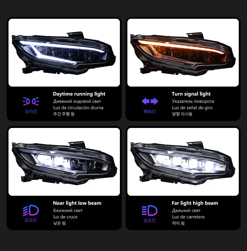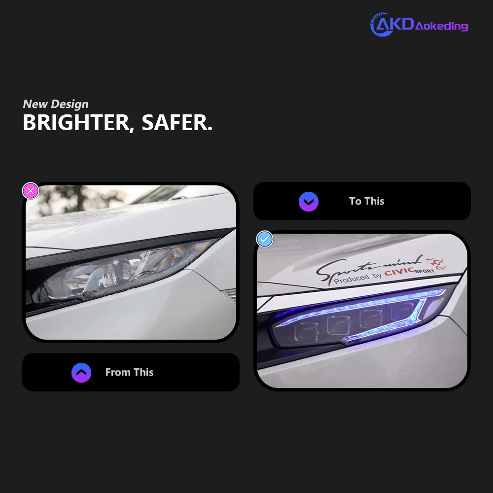 AKD Car Styling for Civic X Headlights 2017-2020 New Civic LED Headlight Sedan Hatchback LED Projector DRL Head Lamp Accessories