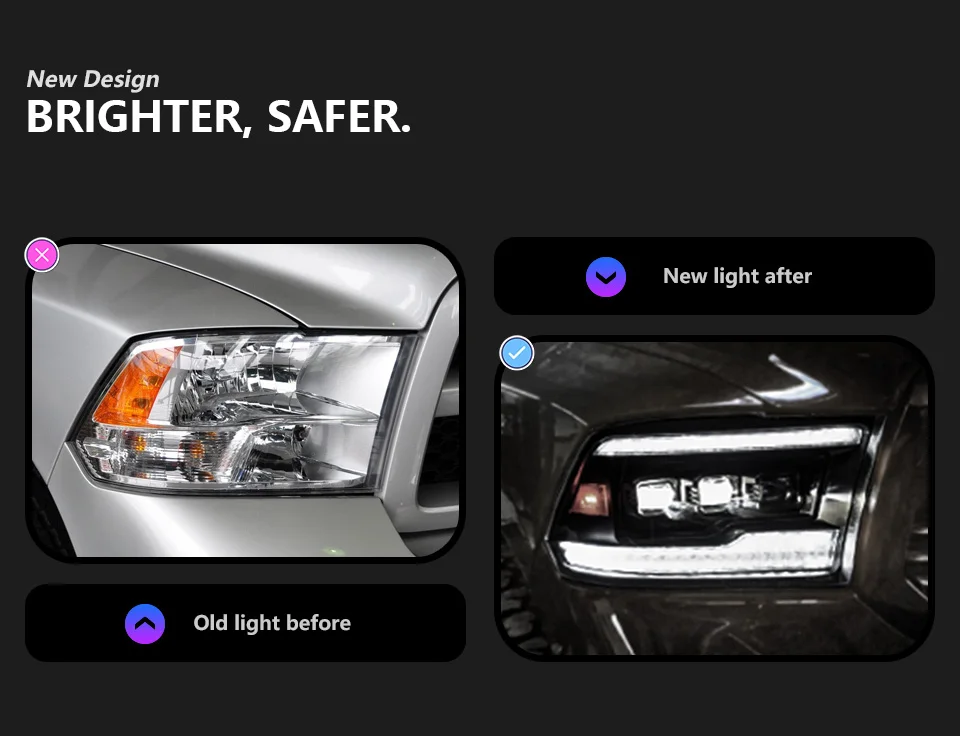 If your Ram is still rocking OEM headlights, then it’s time for an upgrade. Even the latest and greatest OE “projector” headlights for the Ram are still powered by halogen bulbs and their light output is laughable at best.