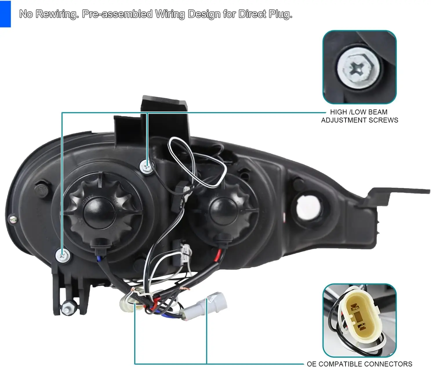 Direct Bolt On Replacement From Your Original Headlights! No Wiring or Modifications Needed! No Installation Instructions Included, Professional Installation is Highly Recommended!