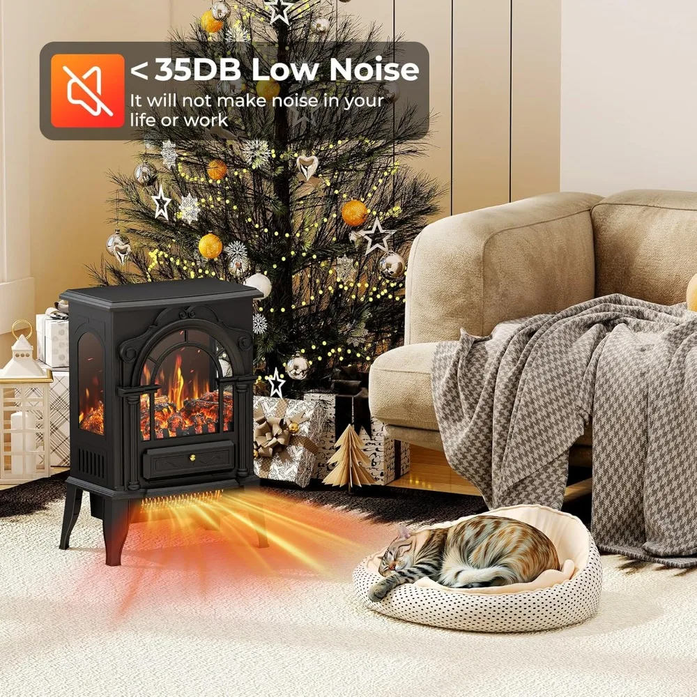 - 【Charming Vintage Design】Inspired by medieval church architecture, the retro-style body adds a unique historical touch to any room. Assembly takes only minutes—just attach the four legs, plug it in, and enjoy a portable fireplace that combines function and style