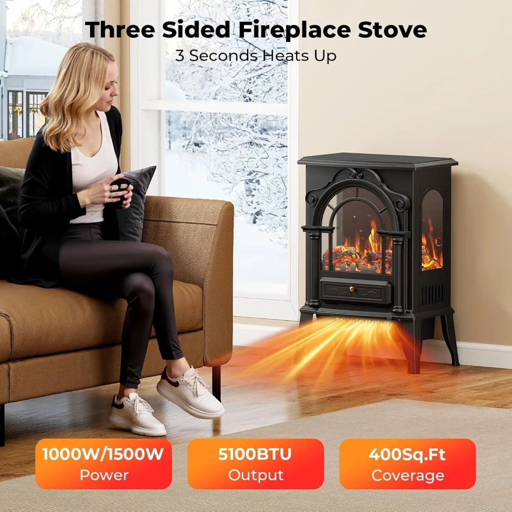 - 【Fast & Efficient Heating】Featuring 2 heat settings (1000W/1500W) and an adjustable thermostat, this electric heater stove warms 600 sq.ft. in just minutes. Perfect as a small space heater, it delivers steady, efficient heat for chilly nights, whether you’re relaxing on the sofa or working at your desk