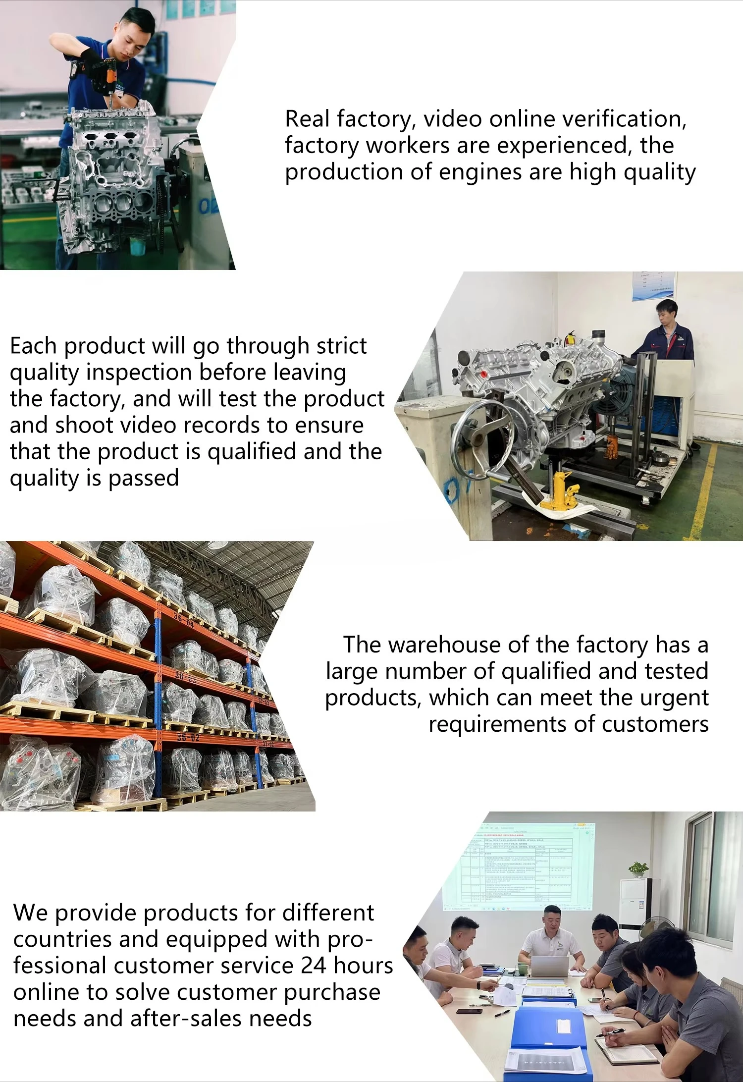3.We have over 15 years of experience in the production and research of auto engines, and our technical level and personnel
