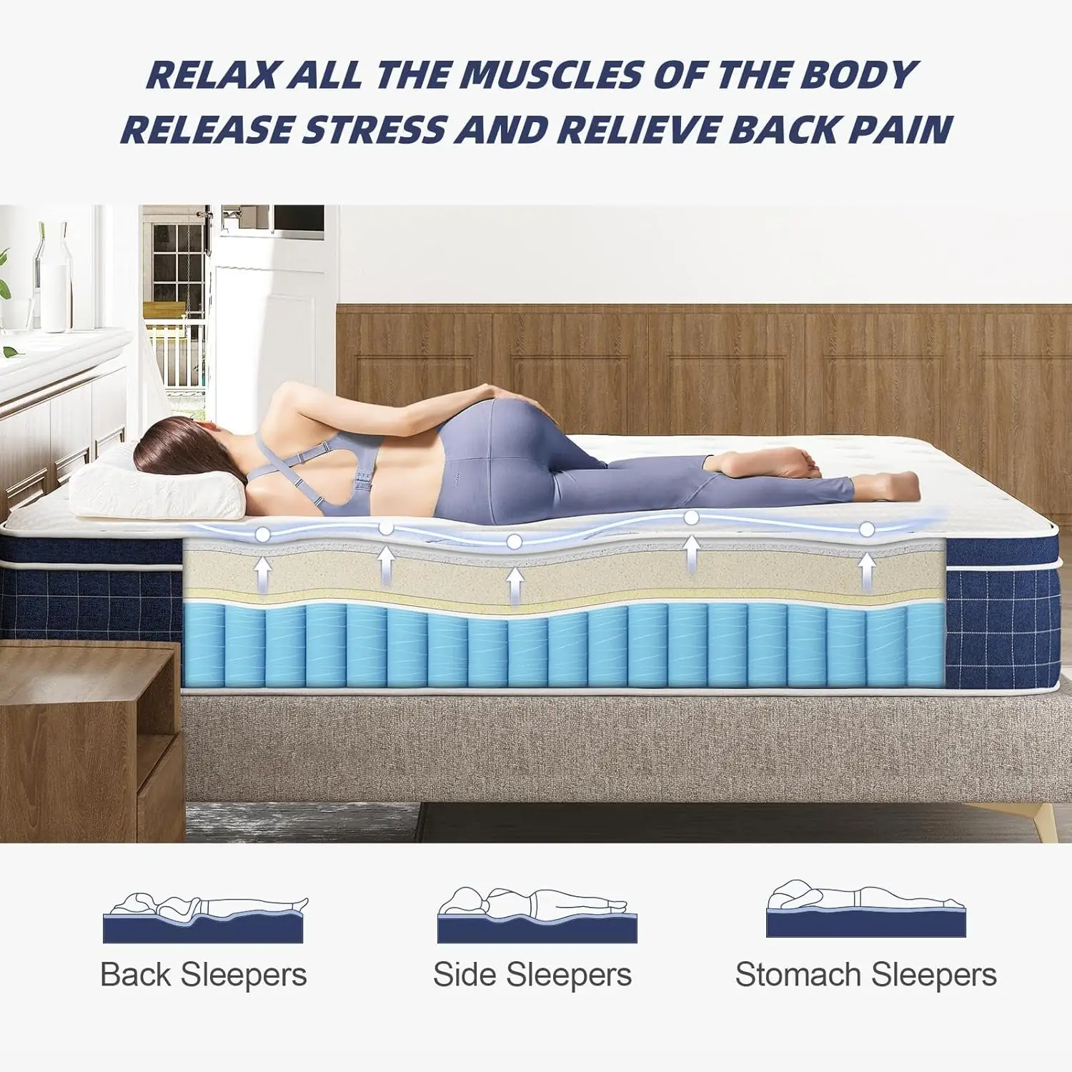1. 【ENJOY LUXURIOUS AND COMFORTABLE SLEEP】The hybrid full mattress is composed of multiple layers of high-quality memory foam and independent pocket springs. It perfectly fits your body curves, providing you with the best support and comfort. It effectively relives back pain and releases stress. It is cool and breathable. With it, you can experience ultimate comfortable sleep