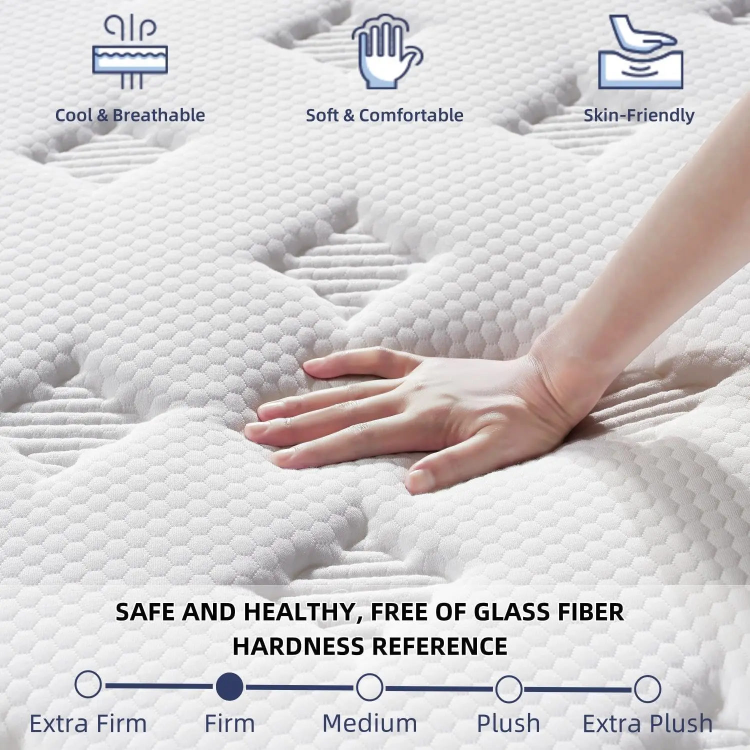4. 【COOL & BREATHABLE】The mattress full size is designed with carefully selected safe and breathable fabric, without fiberglass. It effectively promotes air circulation, expels excess heat and sweat from the body, and keeps your sleep cool & comfortable