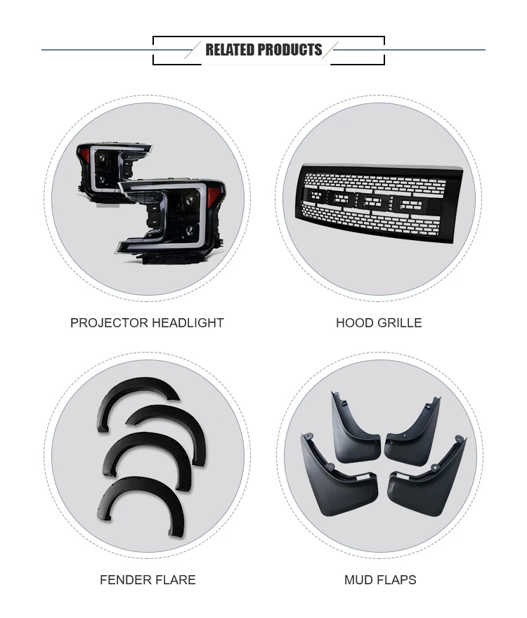 Injection parts – hood grille, fender flare, front bumper, front bumper lips