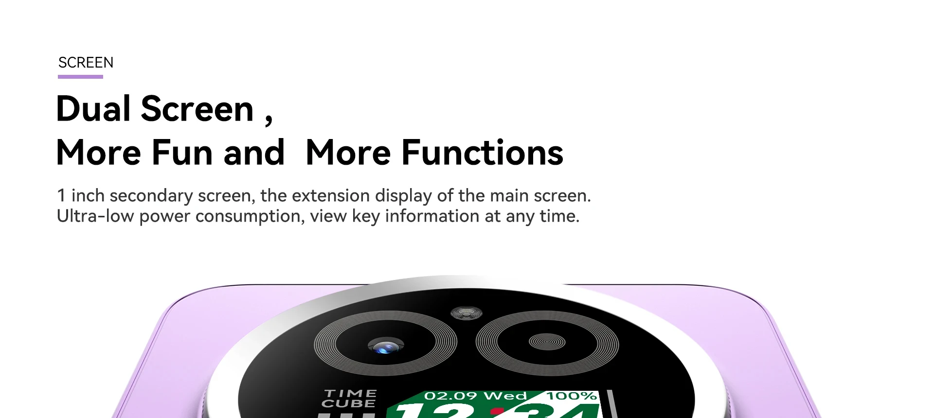 1 inch secondary screen, the extension display of the main screen.