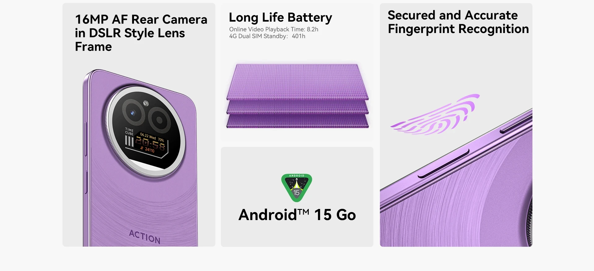 Android™ 15 Go offers deeply optimized performance and privacy, enabling smooth multitasking, power-efficient eye protection, and an upgraded experience for both work and entertainment.