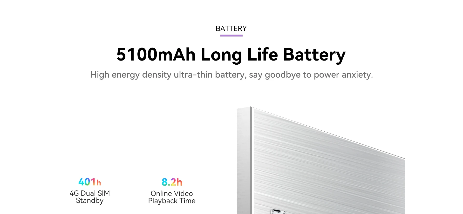Online Video Playback Time: 8.2h, 4G Dual SIM Standby:401h