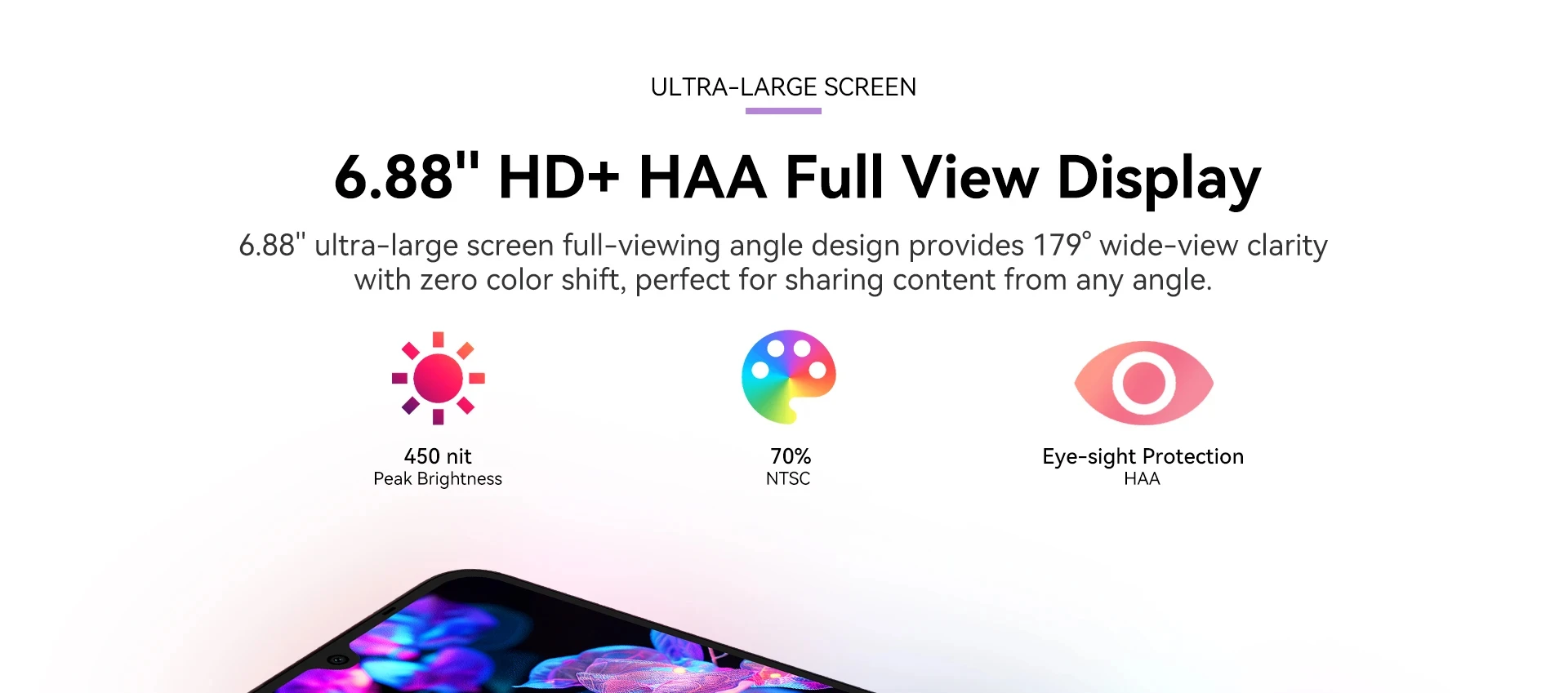 Display: 6.88inch HD+ HAA Display