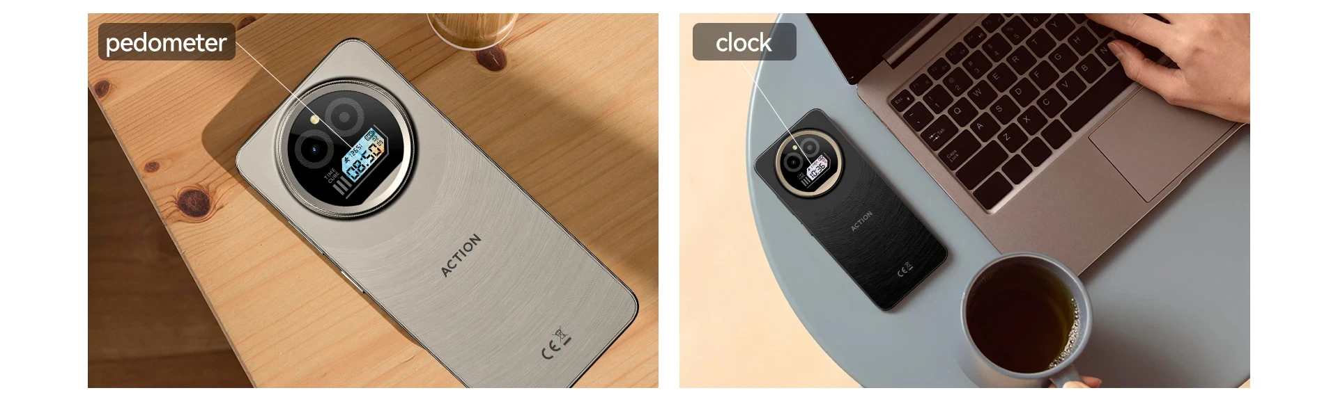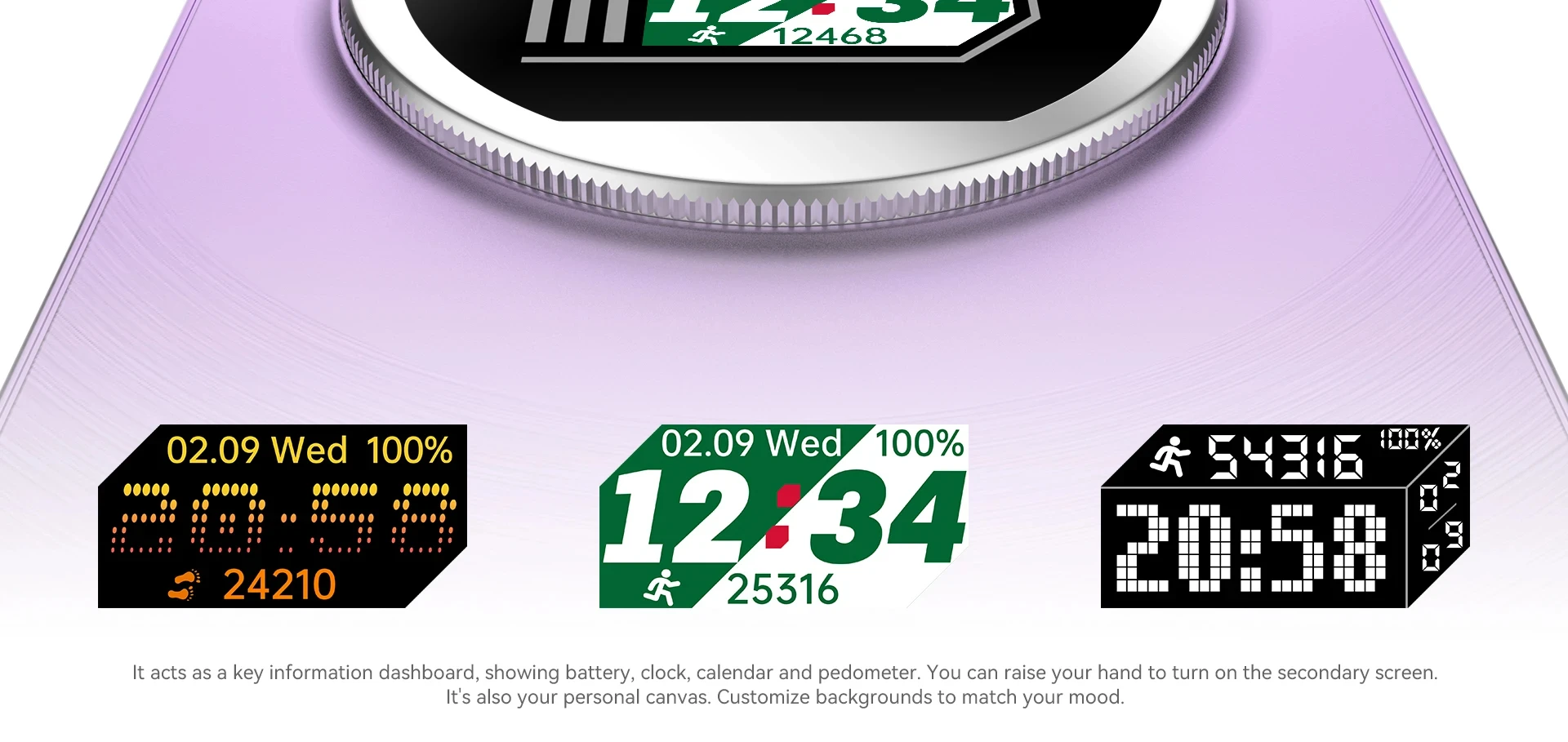 It acts as a key information dashboard, showing battery, clock, calendar and pedometer. You can raise your hand to turn on the secondary screen.