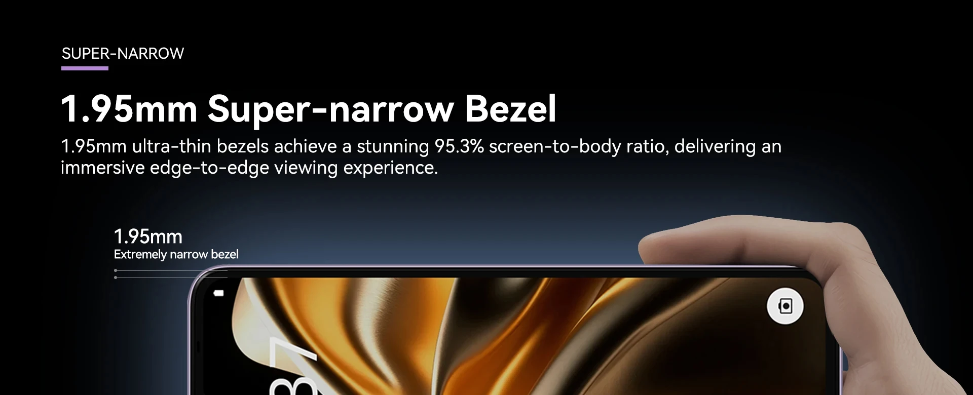 1.95mm ultra-thin bezels achieve a stunning 95.3% screen-to-body ratio, delivering an immersive edge-to-edge viewing experience