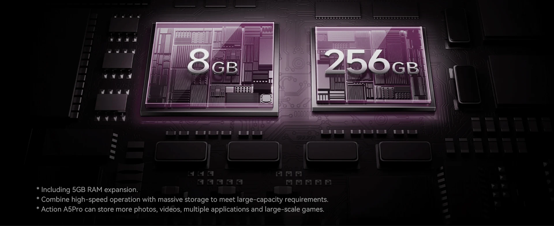 Action A5Pro can store more photos, videos, multiple applications and large-scale games.