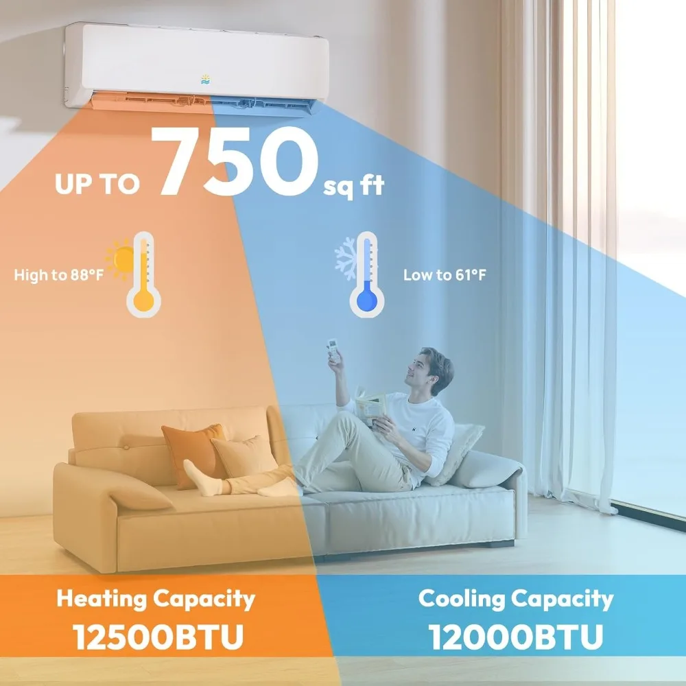 【Powerful 18,000 BTU Cooling & Heating】- This mini split AC/heating system delivers 18,000 BTU cooling and 18,400 BTU heating, covering up to 1,250 sq. ft. With a temperature range from 61℉ to 88℉,it provides rapid and consistent temperature control, making it perfect for bedrooms, living rooms, offices, and more.