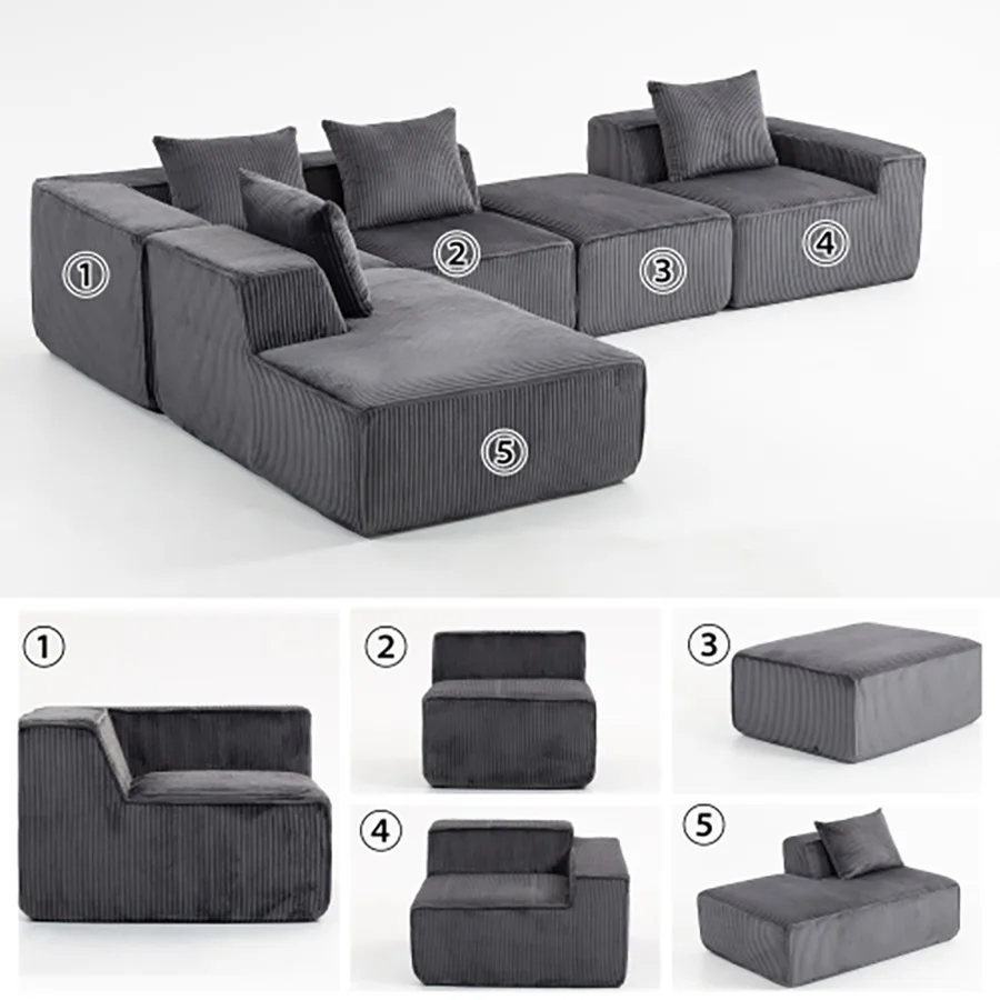Sectional boneless Couch with L-Shape Chaise,Modern Modular sleeper Sofa with Deep Seat, Upholstered Couches for Room