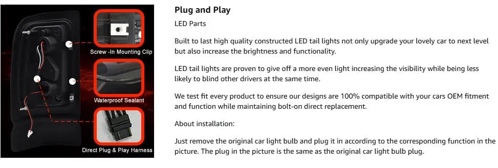 【Daikokuya LED Tail Lights Features】: Full Led tail lights. Starting Animated Tail Light Assembly, Dynamic Turn Signal,Parking Light, Brake Light,Reverse Light
