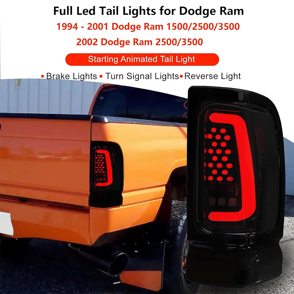 Sequential Full LED Tail Lights Assembly for Dodge 1994-2001 Ram 1500 Dynamic Turn Signal Light for 1994-2002 Ram 2500/3500