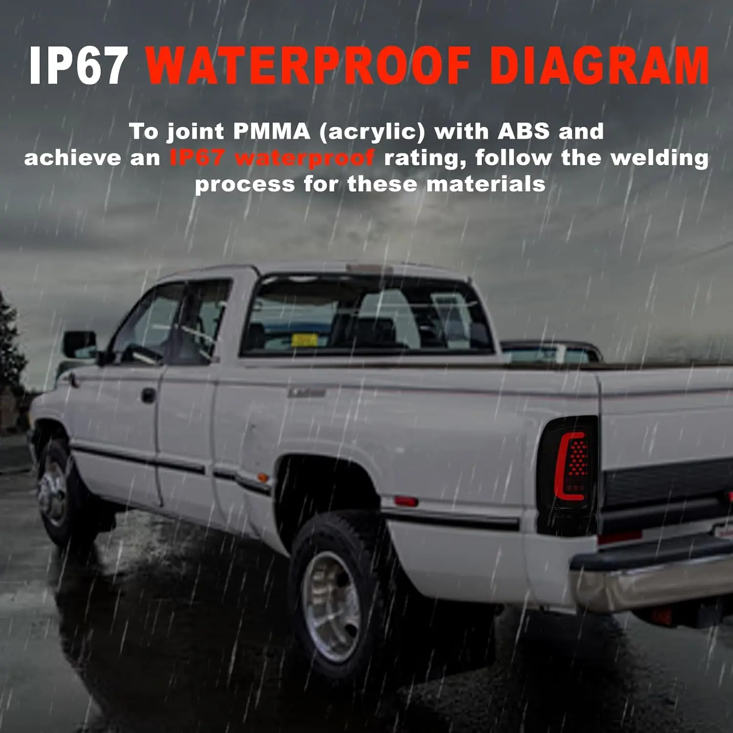 【IP67 waterproof】:To joint PMMA (acrylic) with ABS and achieve an IP67 waterproof rating, follow the welding process for these materials. Ensure proper surface preparation before bonding and apply even pressure during the welding process. After successfully welding the materials, test for IP67 waterproof rating to verify their effectiveness