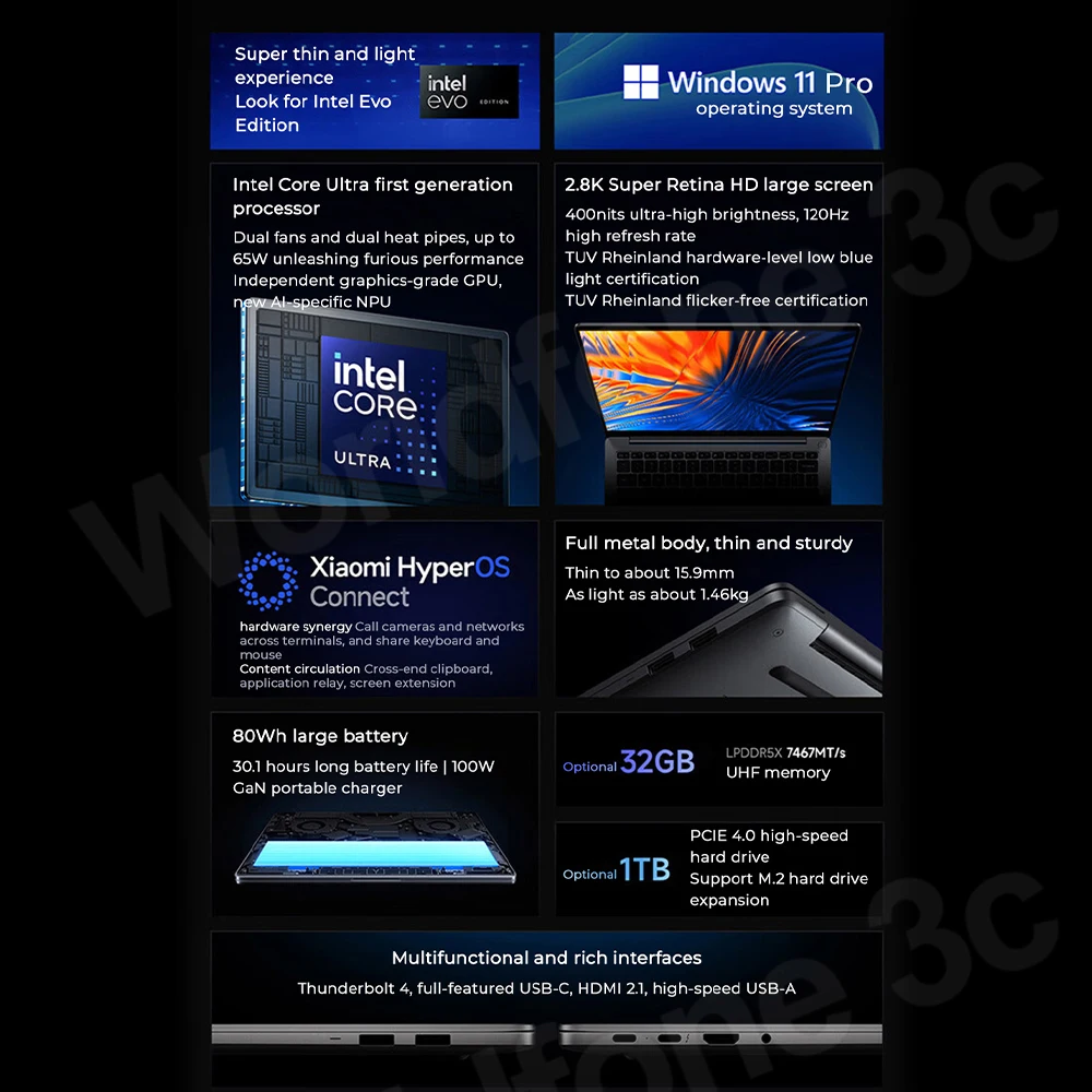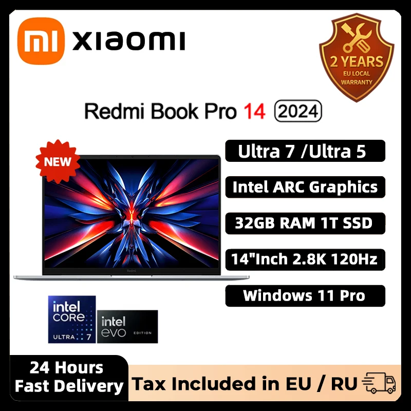 XIAOMI Redmi Book Pro 14 New Laptop Intel Ultra5 125H 7 155H RAM 32GB SSD 1TB 14″Inch 2.8K 120Hz Notebook Ultrabook Computer PC