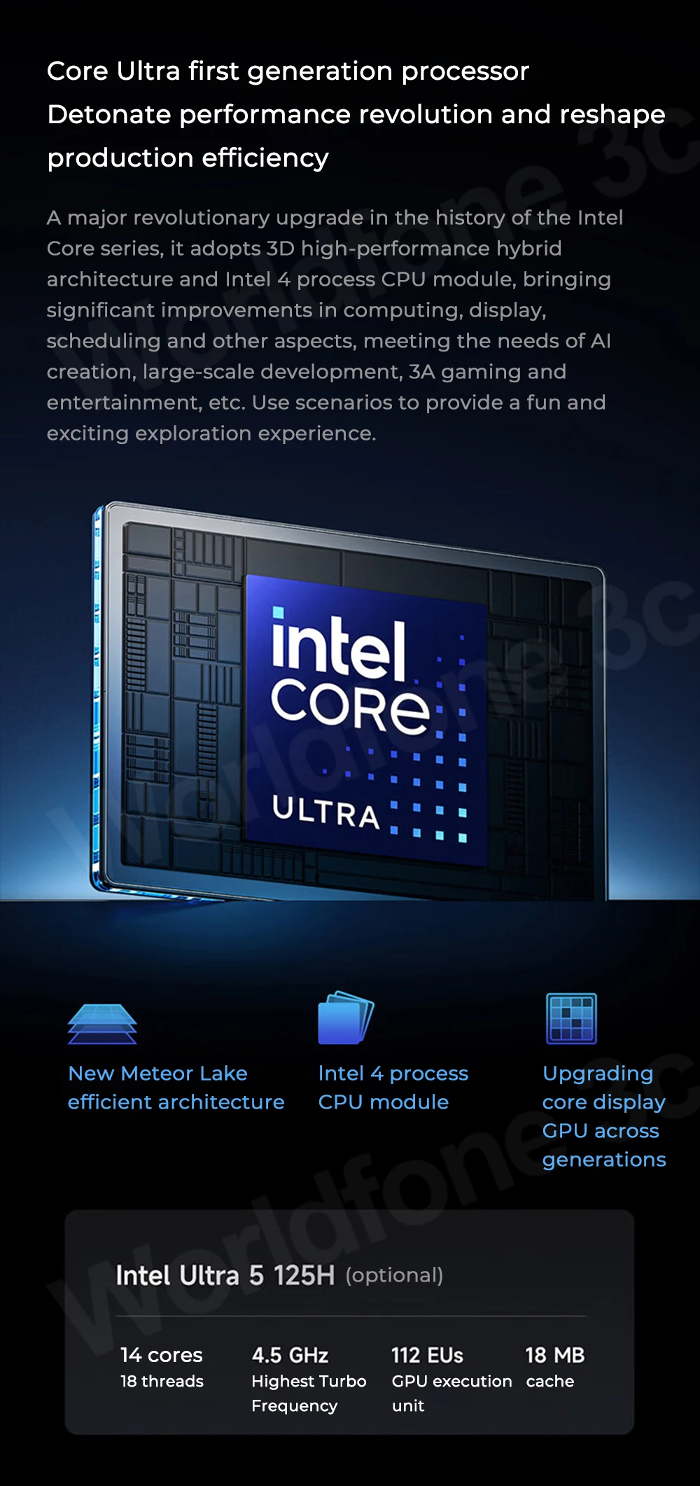 A major revolutionary upgrade in the history of the Intel Core series, it adopts 3D high-performance hybrid architecture and Intel 4 process CPU module, bringing significant improvements in computing, display,