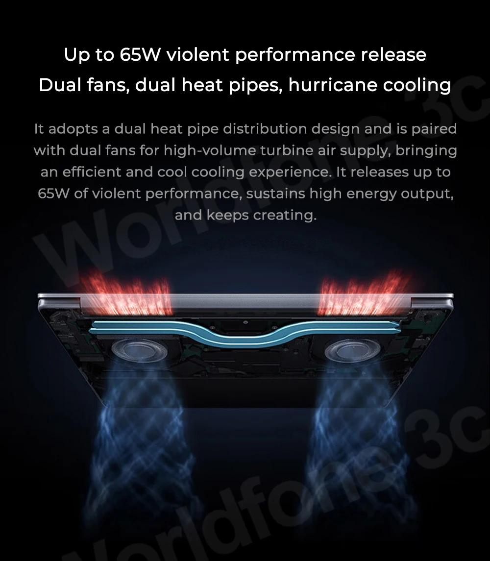 Up to 65W violent performance release Dual fans, dual heat pipes, hurricane cooling